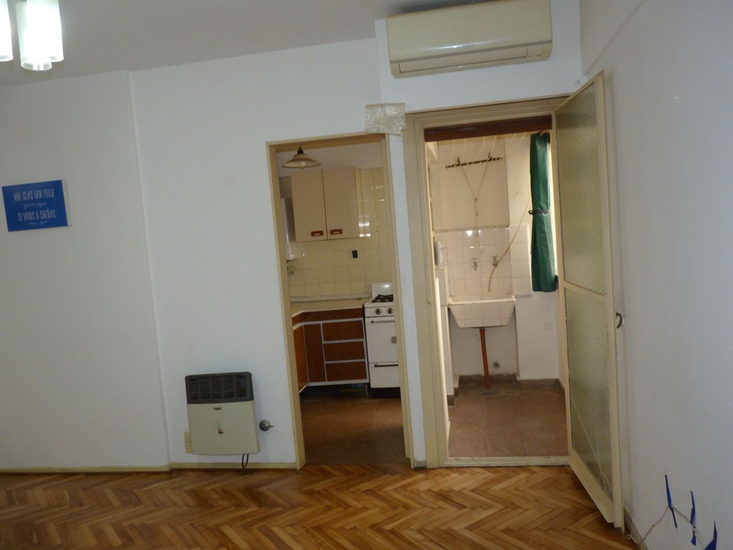 Depto de dos ambientes. Living comedor con aire acondicionado, cocina, lavadero cubierto. Dormitorio con placard. Un baño completo. Pisos de parquet hidrolaquedo. Luminoso. Excelente ubicación a metros de la salida del subte. Listo para mudarse. Bajas expensas.